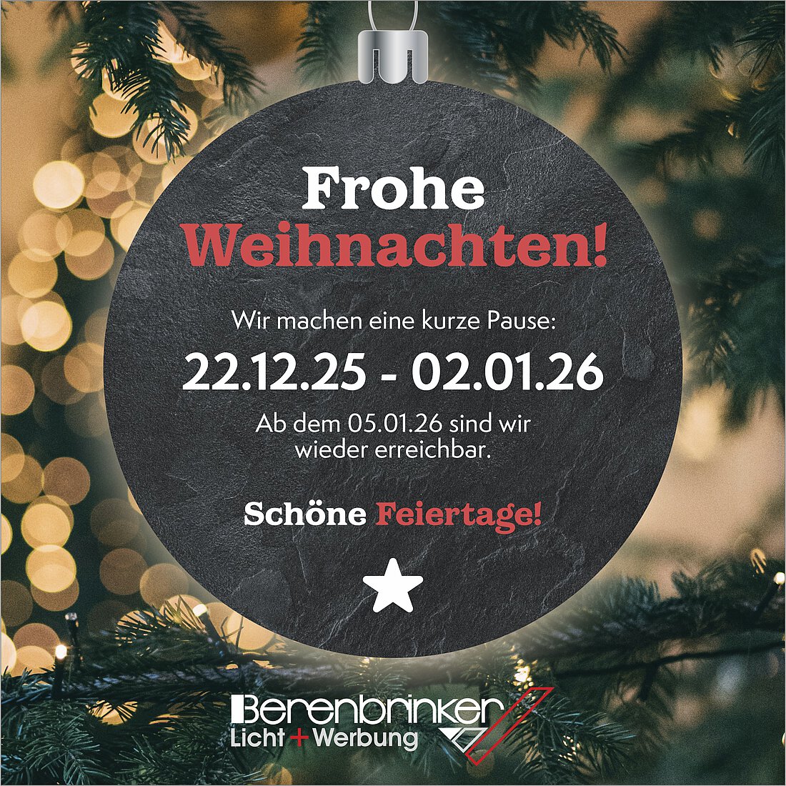 Vom 22. Dezember 2025 bis einschließlich 2. Januar 2026 gönnen wir uns eine kleine Auszeit.